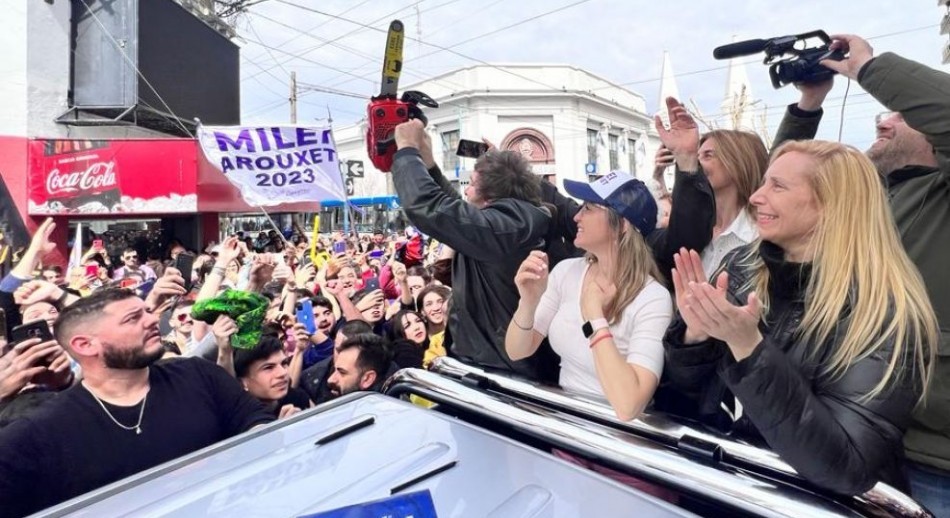 En la caravana de este mediodía, Milei también estuvo acompañado por su hermana Karina; la candidata a intendenta de esa ciudad, Celeste Arouxet y otros referentes de La Libertad Avanza.